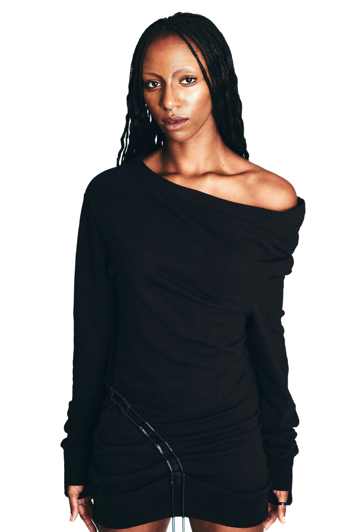 Fabrics fall away yet stay poised and sexy as the silhouettes remained familiar. Straps are shingled and are left revealing the body with poetic movement. Garments have elastic cording for flexibility, ease, and adjustability. Others are waterproof for versatile resilience.